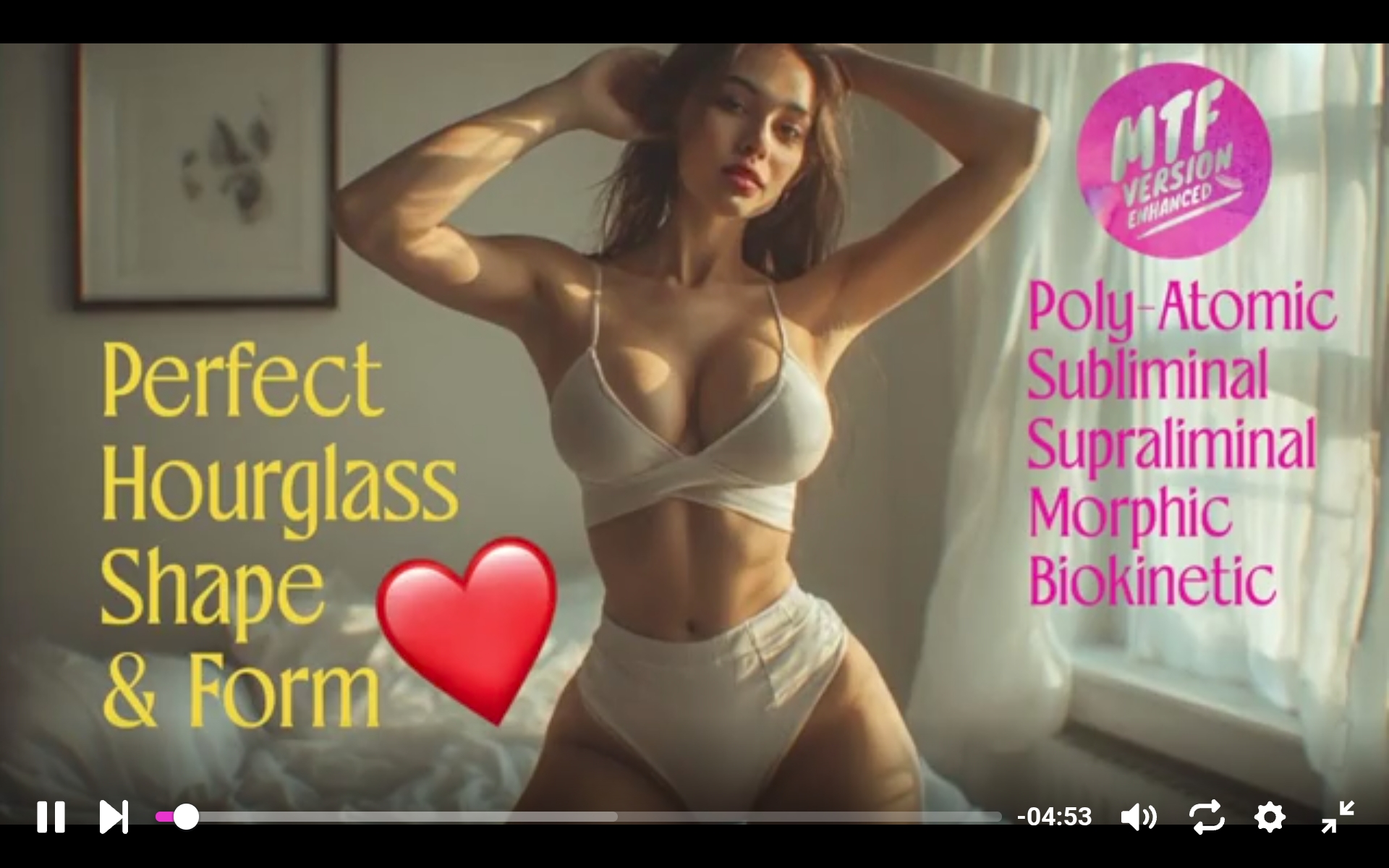 I've become a big fan of feminization / feminine body enhancement subliminal files. There's a bunch of them all over youtube from supposed breast and butt enhancement / growth to lip plumpening to you name it, getting wider hips and more feminine facial features, more feminine sounding voice, etc... I'm particularly interested in skeletal feminization myself actually though there are not many of those on there I've found; only a few.
